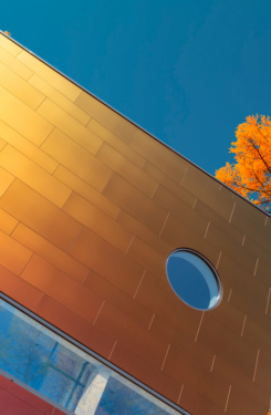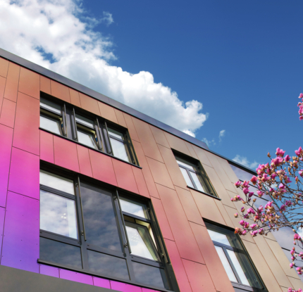 Rockpanel Chameleon creates a dynamic, expressive facade that is constantly evolving. Its vibrant, colour-changing appearance plays beautifully with light and perspective, giving your building a truly captivating presence.